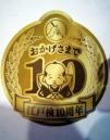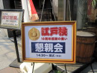 受付で手渡された「おかげさまで江戸検10周年」の紙。「クイズの回答用紙です」。(?)と思ったら、会の途中で「それでは江戸検難問クイズです」。超難問が5問出ました。 |