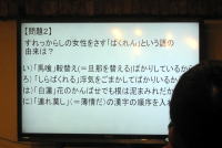 スクリーンに映し出された問題は「すれっからしを意味する『ばくれん』の語源は?」昔から何だろうと思っていました。「連れ莫し(薄情)」の入れ替え語だそうです。 |