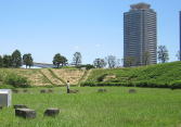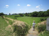 第3台場全容。周囲の土手から昆虫採集の少年と中央の凹を見たところ |