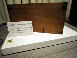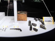 | 「発掘された日本列島2017」は考古学の最近の動向と、近年発掘された遺跡や出土品の展示を主としていますが、その中には水中遺跡の発掘も含まれています。幕末、箱館戦争の折に江差沖で座礁沈没した「開陽丸」の遺物品が展示されていました。 |