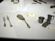ピストルや日本刀ばかりではなく、食器類や生活用品なども発掘されました。海軍生活の一端を示します |