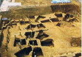 今回の調査では3町屋敷から合わせて100もの糀室が発掘されました。隣り合った室が重ならないような形になっています。 |