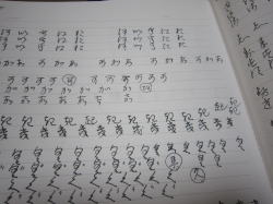 昔の子供はえらいなあ、と感心しつつ、ノートに崩し字を繰り返し書いて手習い中です。 |