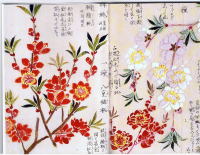 「貝甲図」は木村兼葭堂の「奇貝図」と似てる。八重咲きの梅に美しく映える青い鳥はきっとオオルリ。飽きることがありません。 |