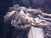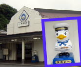 横須賀名物は「海軍カレー」。JR横須賀駅ではカモメの 「スカレー」君がカレーをささげ持っていました。 |