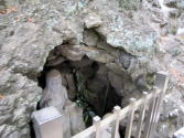 品川神社には富士塚があります。↑は2合目辺りにある食行弥勒の洞窟 |