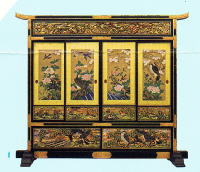 「 梨地筥牡丹蝶尾長鳥文蒔絵用箪笥」には10の引き出しがあり、引出し毎の展示でした。 |