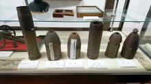 砲弾と右に見えるのは火薬入れ。新政府軍は主戦力となる開陽丸の沈没を知って攻撃を開始しました |
