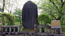 公園内の「河井継之助の碑」。継之助は戦闘中被弾し、長岡城陥落後会津に向かう途中、傷が悪化して 只見で死亡します。 |
