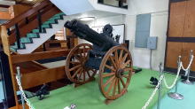 「長岡まつり」で使ったガトリング砲が展示されていました。継之助は、有事に備え、早い時期からアームストロング砲やガトリング砲を購入していました。 |