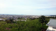 実際の長岡城は平城で天守閣は無く、「お三階」という建物がシンボルだったそうです。資料館の天守からは長岡の町と、その先に弥彦山が見えます |