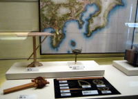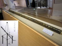 高橋至時に師事した伊能忠敬は50歳から天文や測量を学び、精巧な日本地図を作りました。これは測量機器の展示。 |