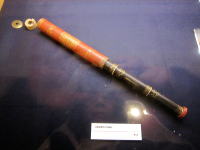 | これは吉宗が造らせたという大望遠鏡。左下の様に吊って使ったらしい。 |