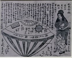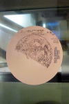 望遠鏡を使うと月の表面には泡粒のようなものが見えました。左は文化10年の掛け軸。右は国友一貫斎の描いた月面です。 |