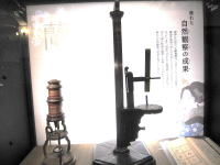 長崎からはヨーロッパ製の顕微鏡も輸入されました。上はドイツ製のもの。左は「紅毛雑話」にも描かれています。 |