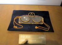 | ガラスの眼鏡は家康も用いていたとのこと。江戸後期には背中にいっぱいメガネを担いで売り歩いたとも。 |