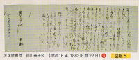 | 左は明治5年天璋院宛に出された断髪許可証。箪笥の右の一番上の引き出しに他の重要書類と共に入っていました。 |