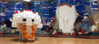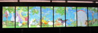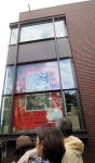 「鳥獣花木図」は8万6千個のピースでできています。ロビーにそのモザイクのアニメーションがありました。 |