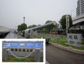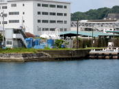 この後横須賀軍港めぐりの船に乗りました。小栗、ヴェルニーが築いたドライドック跡は何も残っていませんが、明治期の地図と見比べるとおそらくこの辺りのはず。 |