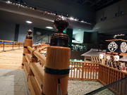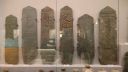 常設展示の神社ゾーンは撮影禁止。広い考古ゾーンには石器、土器、埴輪や板碑(↑)が |