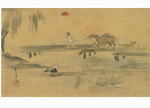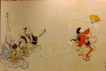 元禄11年将軍綱吉の怒りに触れ三宅島に遠島とされた後も絵を描き続け大赦で江戸に戻り英一蝶として活躍。絵を残した宜雲寺は一蝶寺と呼ばれる |