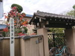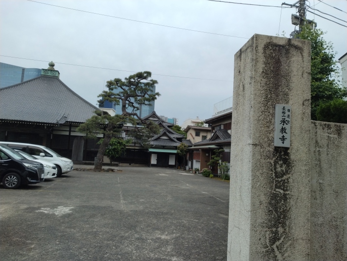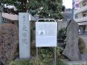 承教寺は二本榎通を入ったところにあります。二本榎の名は品川宿の手前高繩手にあった二本の榎が旅人のよい目印になったから。境内に碑があります |