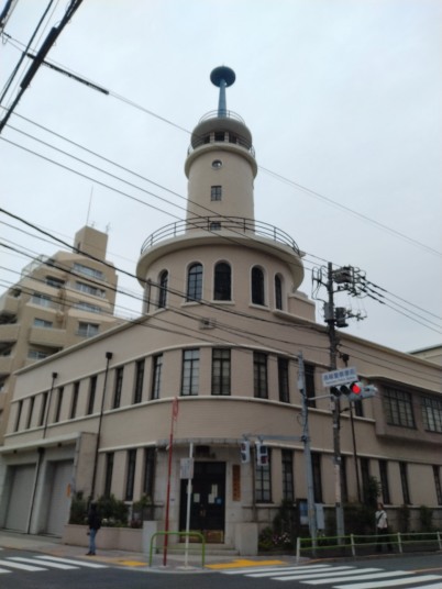 二本榎通から桂坂に向かう交差点にある高輪消防署二本榎出張所の灯台みたいな塔は現代の江戸名所です |