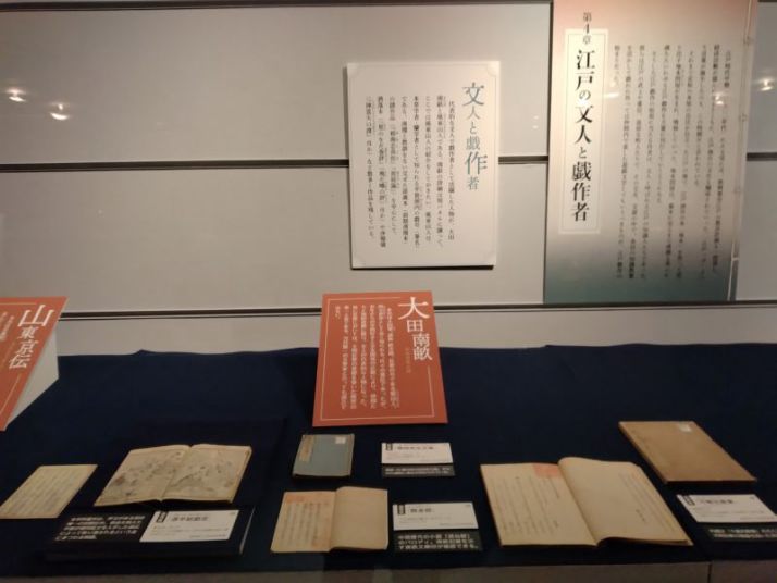 版本の制作工程や版元や出版物の種類や大きさ等。そして↑は大田南畝の本がずらり |