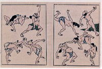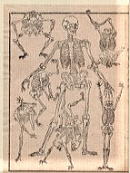 ↑「暁斎漫画」より。暁斎は解剖の本で人骨の研究をしたようです。 |