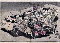 「暁斎百鬼画談」は彼の死後出版されたものです。集まった人が怖い話をしていると次々出てくる百鬼夜行 |