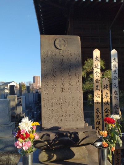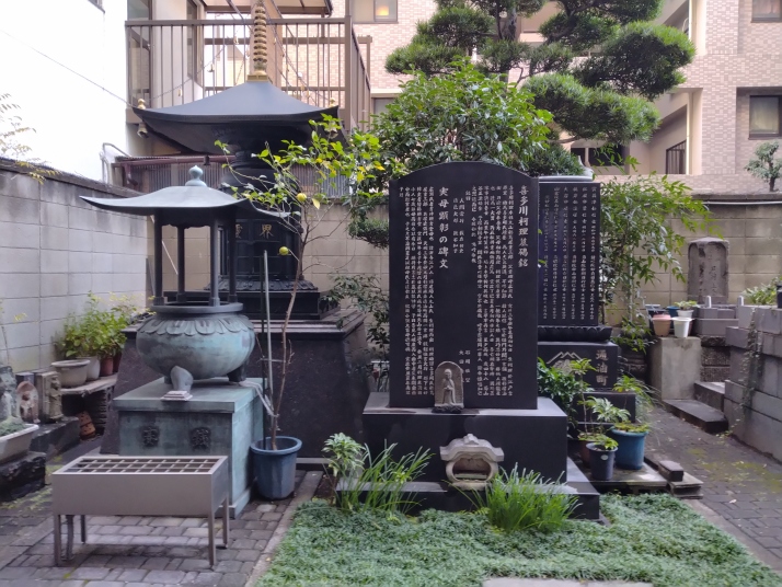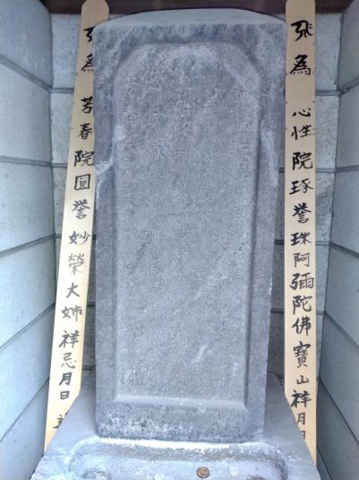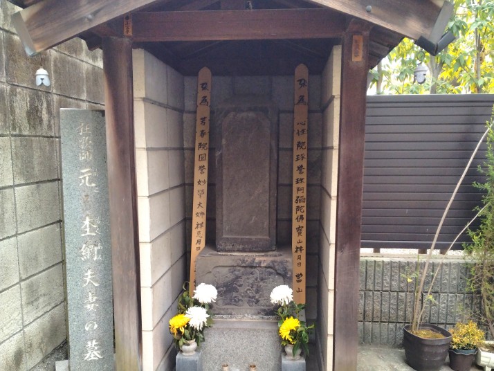 深川の正覚寺にも夫妻の墓があります。江戸にも菩提寺を持ったと思われますがこの寺である理由は不明です |