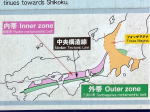 中央構造線は四国から紀伊半島を横断し伊勢湾を横切り、静岡に入った辺りで北に向かっています |