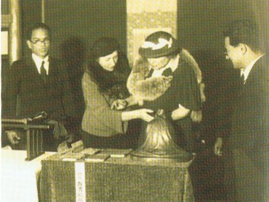 母親から「塙先生をお手本にしなさい」と聞かされていたというヘレン・ケラーが昭和12年に当館を訪れた写真 |
