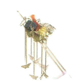 城を守る奥平定昌の家臣鳥居強右衛門は織田に援軍を請い戻る途中武田に捕えられ「味方に援軍は来ないと告げれば命を助け、武田の家臣にする」と言われます。しかし城の近くで「援軍は来るぞ」と叫び、磔にされました。↑左は強右衛門磔の絵、右は「血染めの太鼓」です |