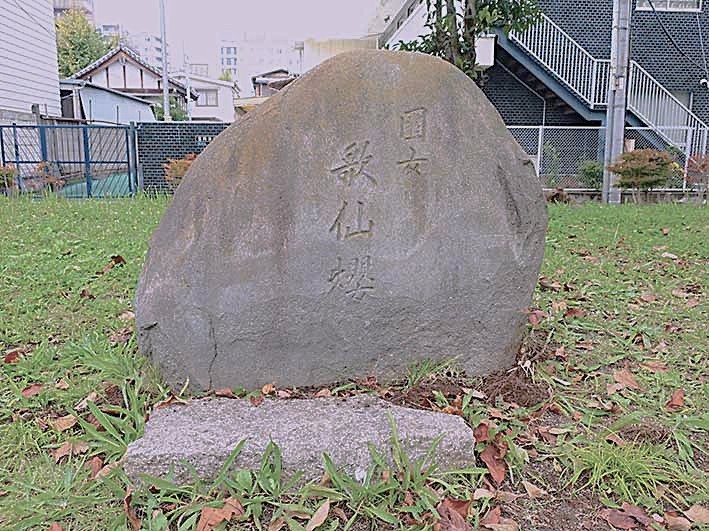桜は「歌仙桜」として江戸っ子に愛されました。「園女」「歌仙桜」 と書かれた歌仙桜の碑 |