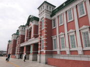 | 深谷駅集合。H8に新しくなった駅はレンガ造りに見えますが、構造上の都合からレンガ風タイルなのだそうです |