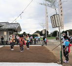 大河ドラマにも登場した、諏訪神社の子供たちの獅子舞。 丁度この日に行われていました。栄一はふるさとの神社を懐かしみ、社殿を寄付するなどしています。上り旗は渋沢栄一の書です |