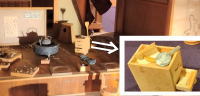 待ち時間に将棋を指すなどして雑談をするので情報収集の場にもなります。ミニ道具箱は引き出しが開き、1cmほどの鏡もありました。 |