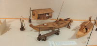 中央は川に浮かんだ船で湯に浸かる「湯舟」(湯ぶねの語源)。三浦さんのおじいさんは船大工だったそうで、船を作るのもお手の物です。 |