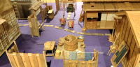 家の戸や障子、灯り取りの窓は全て可動。どの建物にも、細かい設定の道具が置いてあり、物語を感じることができます。落語や歌舞伎や講談、時代小説が趣味の方には「あーここでケンカしたんだ」とか「お、ここに火鉢を置いて内緒でお燗つけたね!」とか「ははあ、船徳の徳三郎はこの部屋で寝ていたんだ」など想像し放題。2023年7月いっぱいまで無料で見ることができます。 |