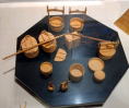 豆粒のような、或いはそれより小さな手桶や振り売りの桶などを作るにはミニサイズのカンナやノミが必要です。三浦さんはそれも自作なさるのです。 |