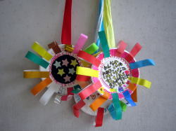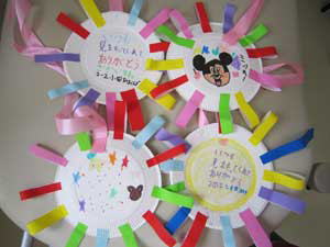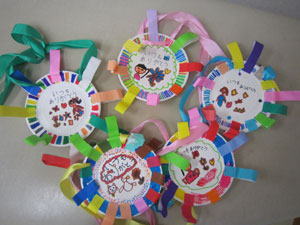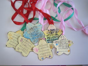 ↑今年も2年生がきれいな「勲章」を作って首にかけてくれました。 |