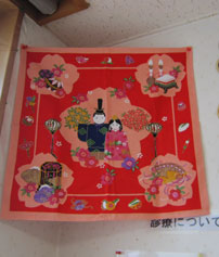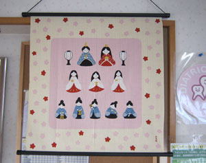 このタペストリーはお友達がプレゼントして下さったもの。やわらかな色使いの可愛いお雛様たち。ステキでしょう? |