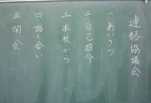 地区の子供たちとお話して、その後連絡協議会がありました。