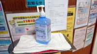 | 受付前の手指消毒アルコールですべての来院者に消毒をお願いし、体温も測定します↓ |
