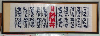 | 待合室と診療室にはディズニーのジグソーパズルを飾っていましたが、色があせてしまったのでこのたび待合室↑は新潟弁の手拭いに。 |