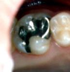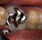 つい30年ほど前までは奥歯の咬合面(咬み合わせの面)の狭い範囲の充填によく使われていました。しかし水銀が含まれており、廃棄による環境汚染の問題があること、材料自体も、周辺の歯質も経時的に黒く変色することから現在ではあまり使われていません。私たちは特殊な場合を除き全く使っていません。 |