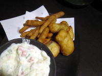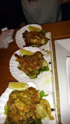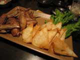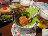 トウモロコシ、海老、オクラの揚物 |