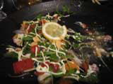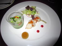 オードブルはシュリンプと帆立貝のマリネ、ミックスビーンズ添え |