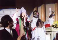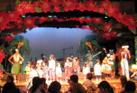 | 途中で子供が舞台に上がり、お客さんみんなでフラを習いました |